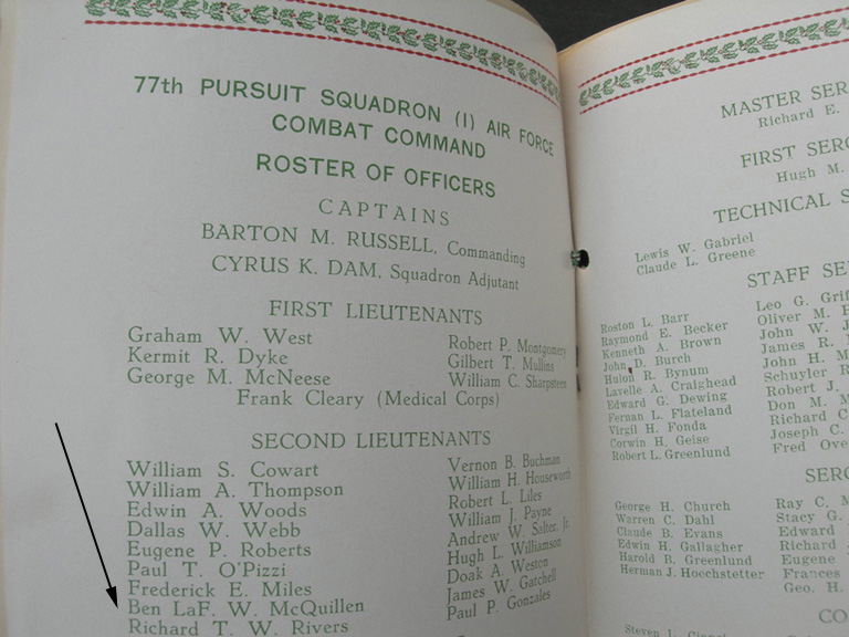 Lt. McQuillen flew P-40's in the States and in the Middle East. I know that he flew a P-40 off of the USS Ranger in 1942!