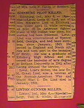 Lt Lind was shot down while flying a p-39 Airacobra on a low level strafing mission in April of 1944.